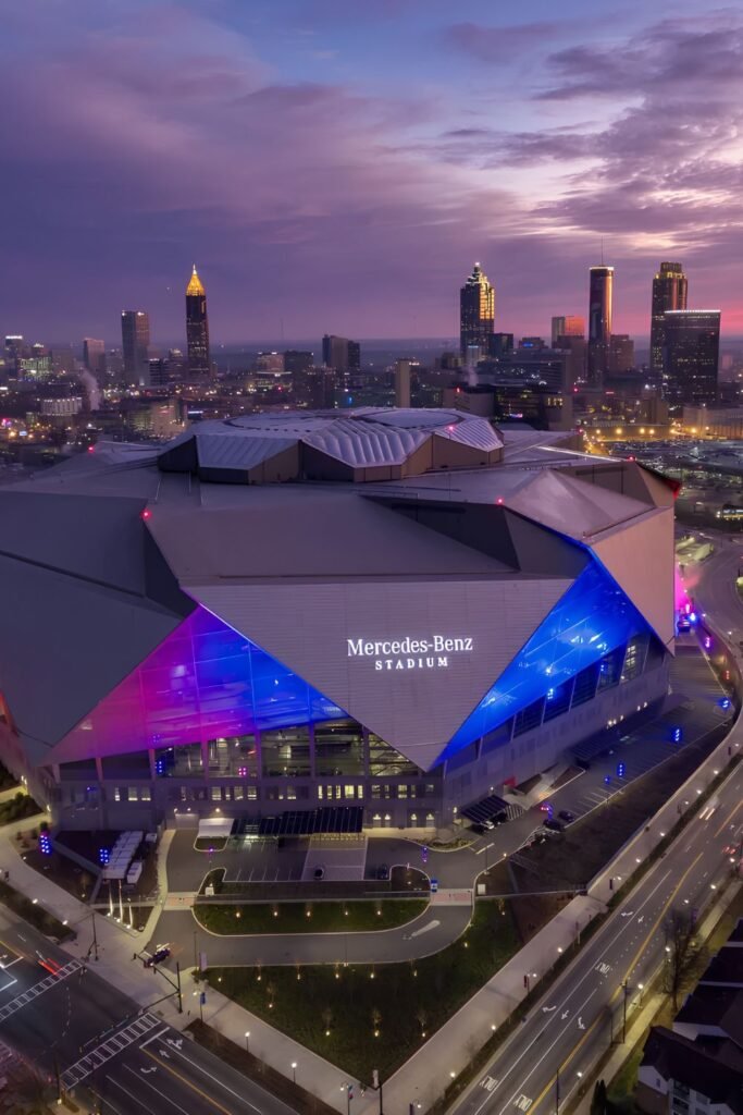 Mercedes-Benz Stadium is one of the most technologically advanced sports venues in the world — a 2-million-square-foot arena with a retractable roof, a 58-foot tall halo video board (the largest in the NFL), and a Platinum LEED zero-waste certification. It is home to the Atlanta Falcons (NFL) and Atlanta United (MLS), and is a host venue for the FIFA World Cup 2026 this summer.