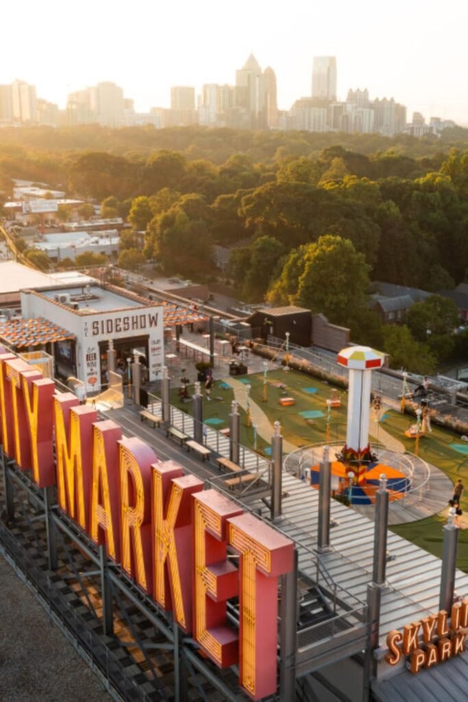 The Central Food Hall is the heart of Ponce City Market, featuring James Beard Award-winning chefs and a wide range of restaurants — from Puerto Rican sandwiches at El Super Pan to handmade pasta at Bellina Alimentari and Southern-fried comfort food at Hop’s Chicken. Above it all is Skyline Park, a rooftop carnival with an 18-hole mini golf course, boardwalk-style games, and one of the best views of the Atlanta skyline you will find anywhere in the city.